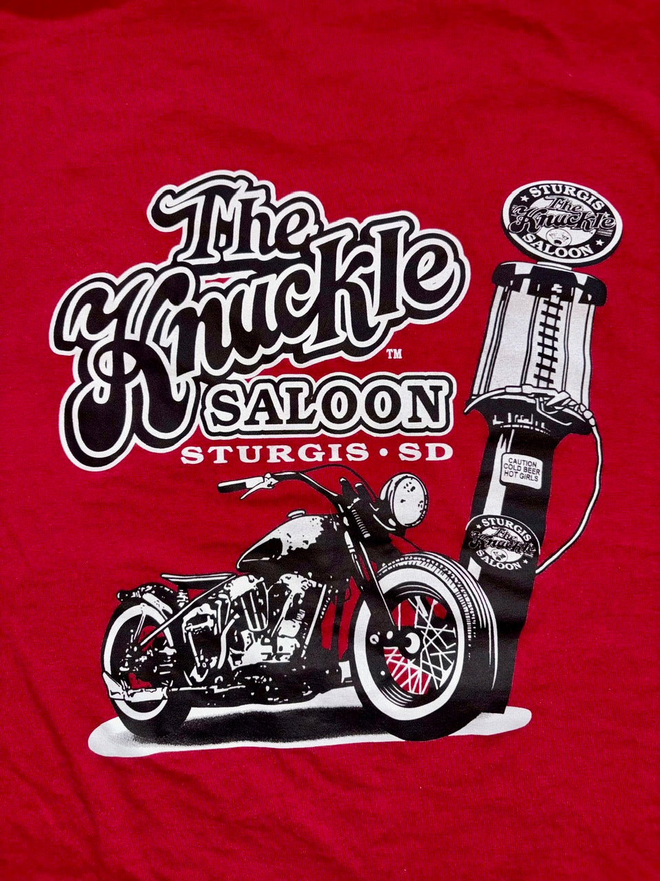Bold, classic, and built for the open road—our Pump Knuckle Shirt features an old-school motorcycle graphic paired with the iconic Knuckle Saloon gas pump design. This vintage-inspired artwork pays tribute to the spirit of Sturgis and the timeless biker lifestyle.