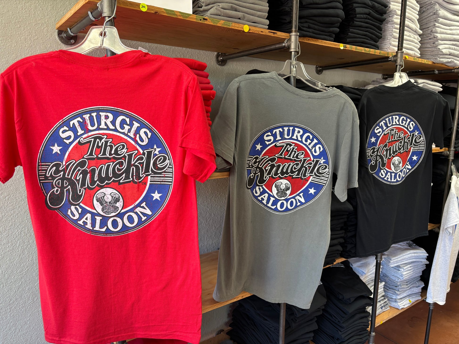 Show your Knuckle pride with the Official Knuckle Logo—the bold red, white, and blue emblem of Sturgis’ most legendary saloon. Whether you’re riding, relaxing, or repping your favorite bar, this collection has a style for everyone.