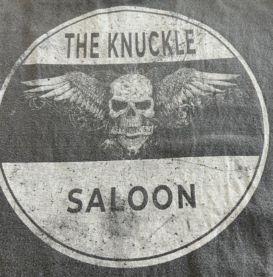 Design: Winged skull with circle “Knuckle Saloon” emblem