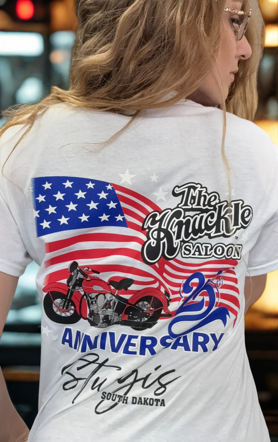 Celebrate a milestone in Knuckle Saloon history with our exclusive 25th Anniversary T-Shirt. Established in 2000, The Knuckle has been at the heart of Sturgis for 25 years—and this shirt honors the ride, the rallies, and the memories made along the way.
