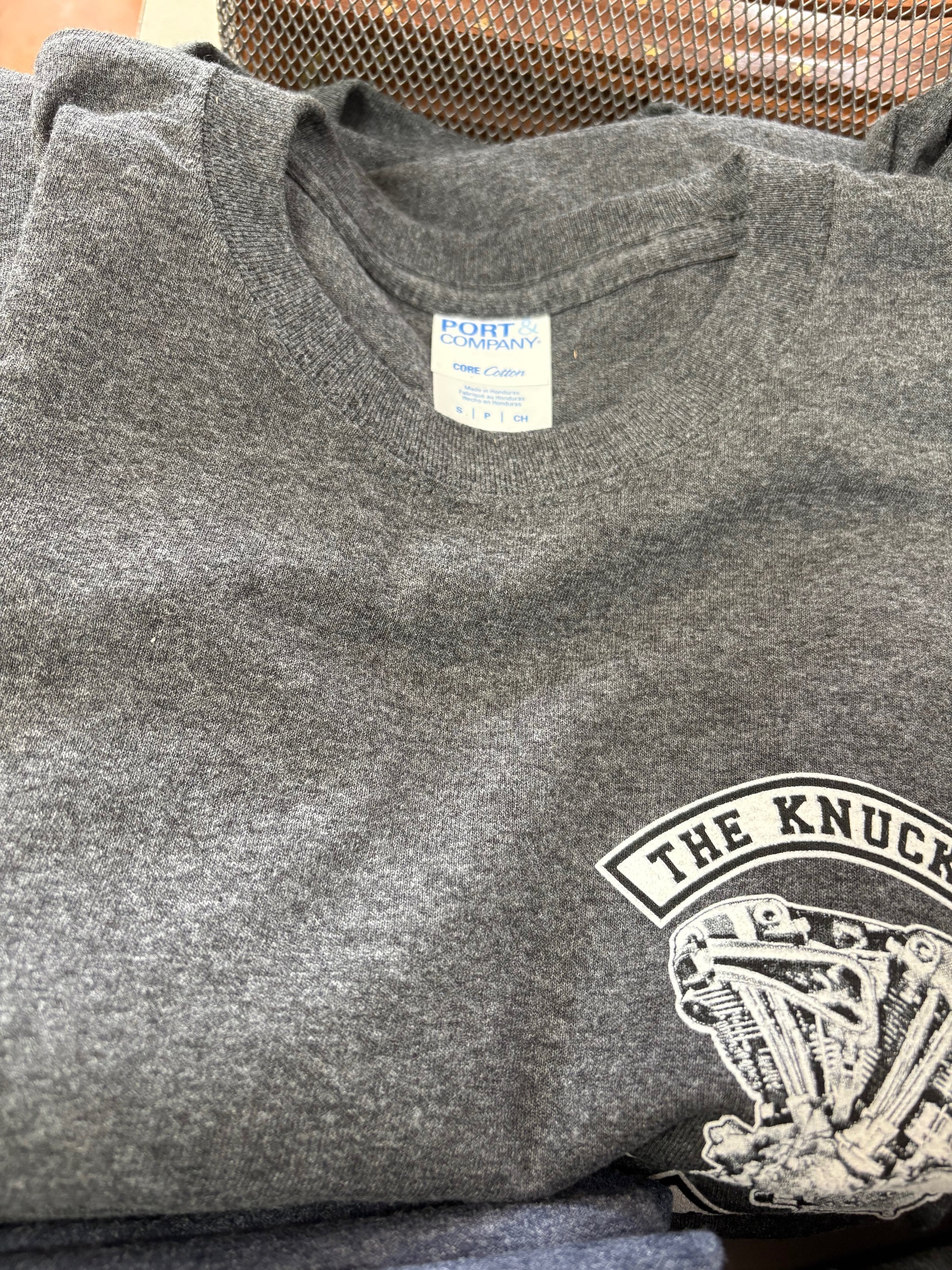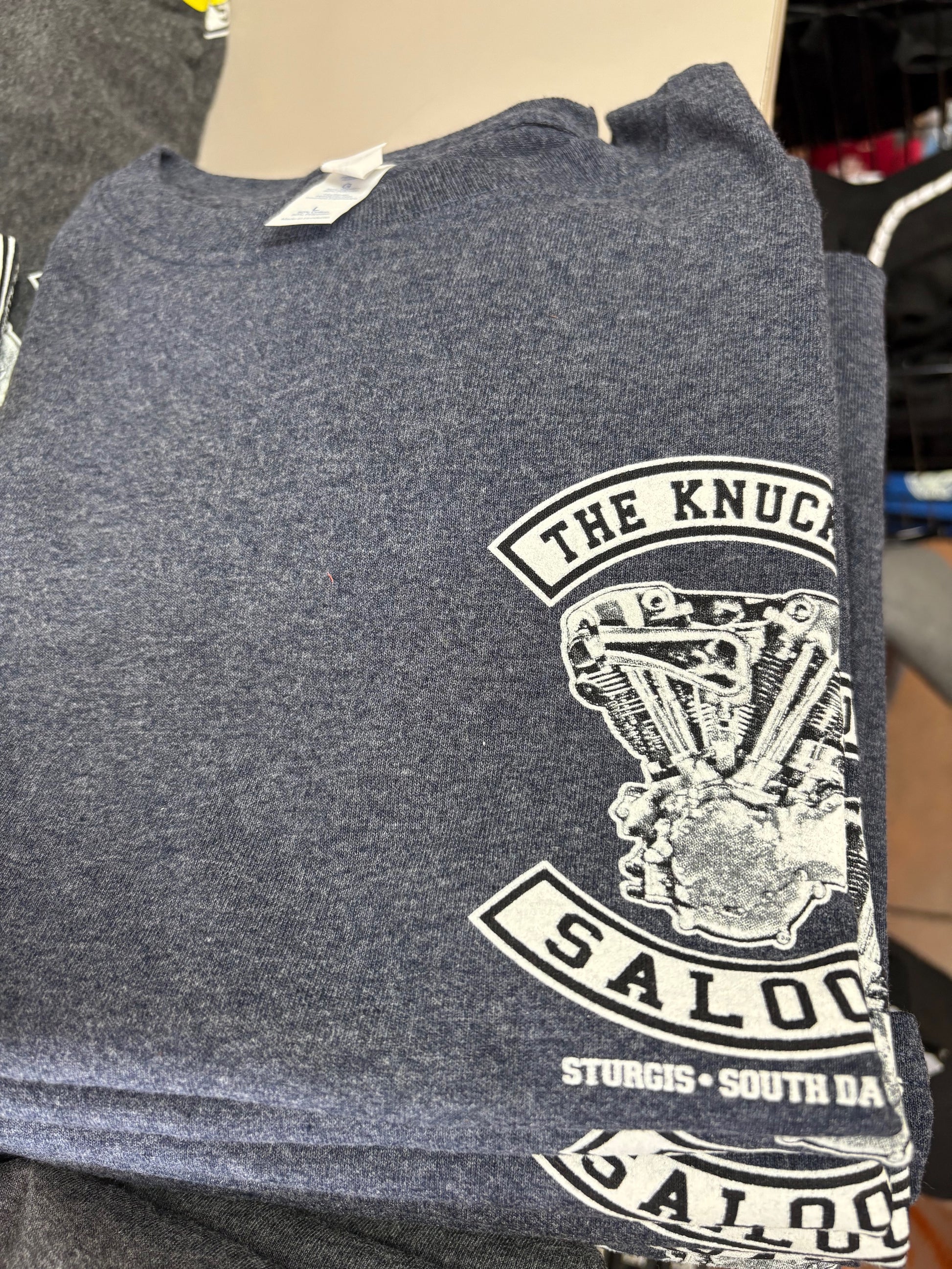 Show off your biker pride with the Knuckle Engine Collection, featuring our signature engine graphic design. Whether you prefer a classic T-shirt, a sleeveless cut, or a long sleeve, this collection delivers both comfort and style with the bold look of The Knuckle Saloon.